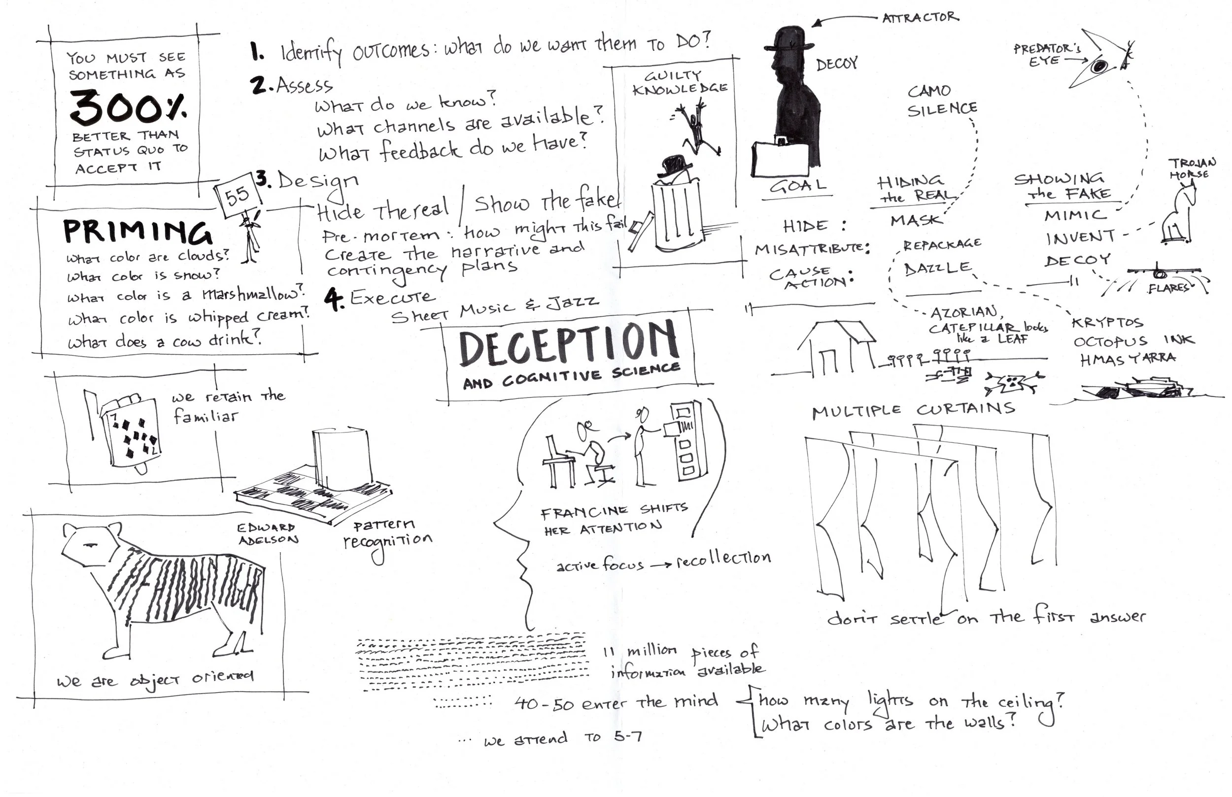 In one of our favorite sketchnotes, we study how deception and cognitive science intersect to shape human attention, perception, and decision-making. These principles aren’t just for stage magicians or spy agencies—they’re for anyone trying to help humans navigate complex ideas, spot patterns, and choose wisely.