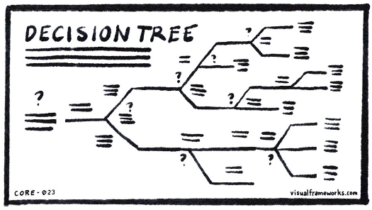 Decision Trees & Models: Use these when the group has choices to weigh. A clear visual of options, criteria, and impacts helps teams move from stuck to decided.