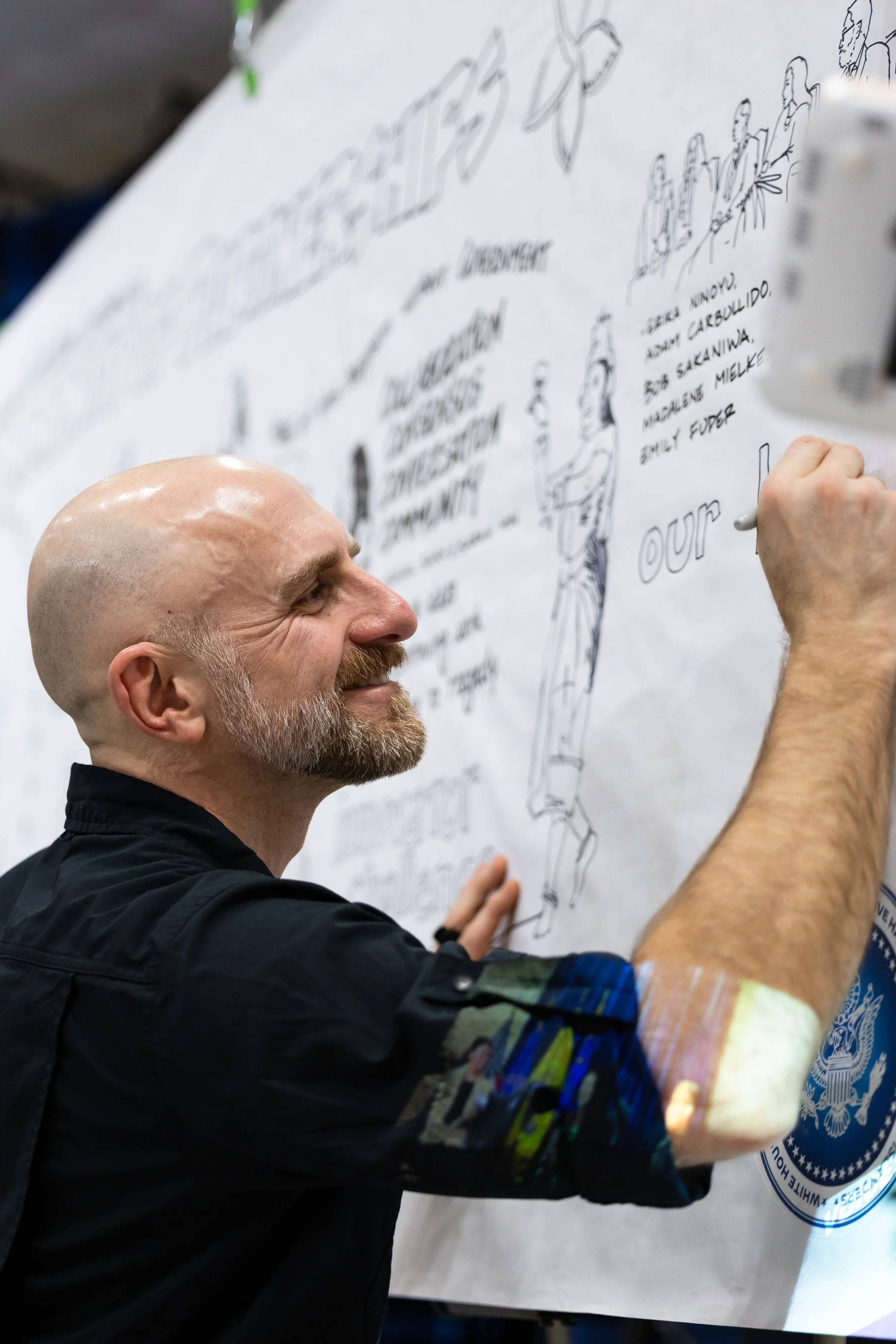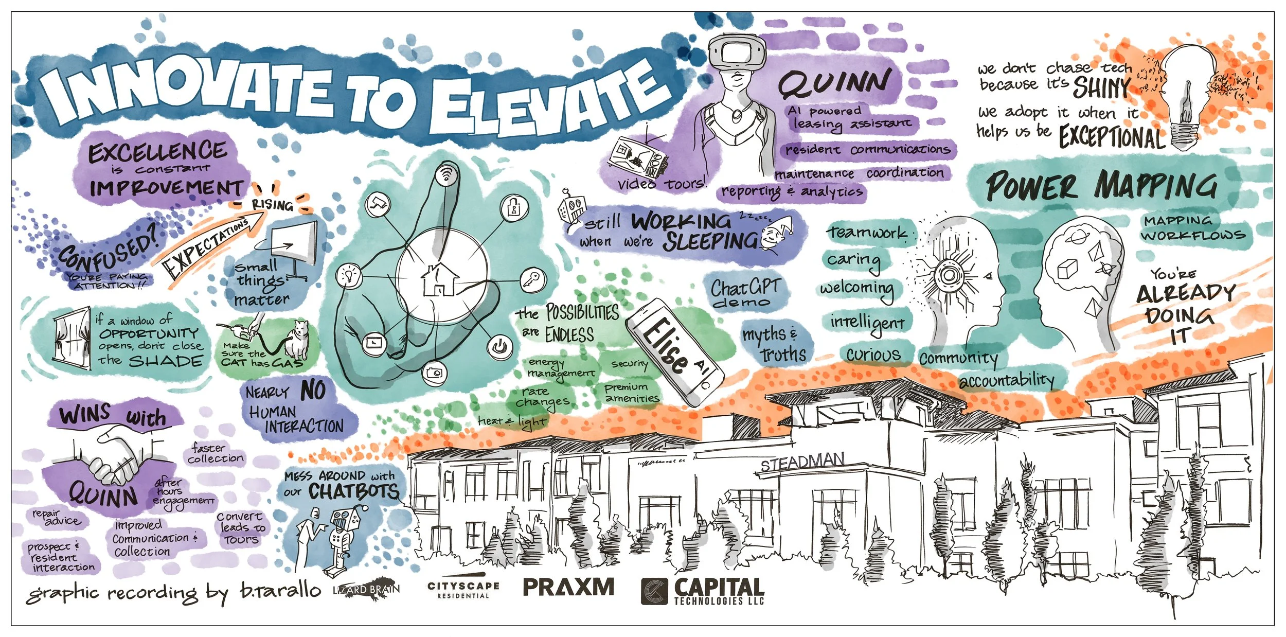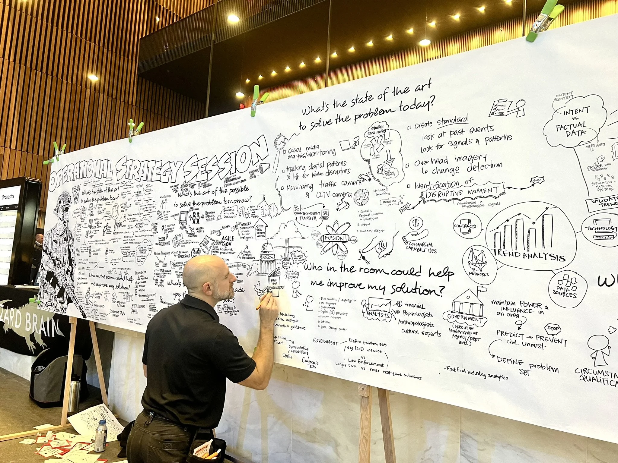 • Our graphic recorders capture key ideas and insights in real time, creating a visual record that enhances memory retention and serves as a valuable reference point.
