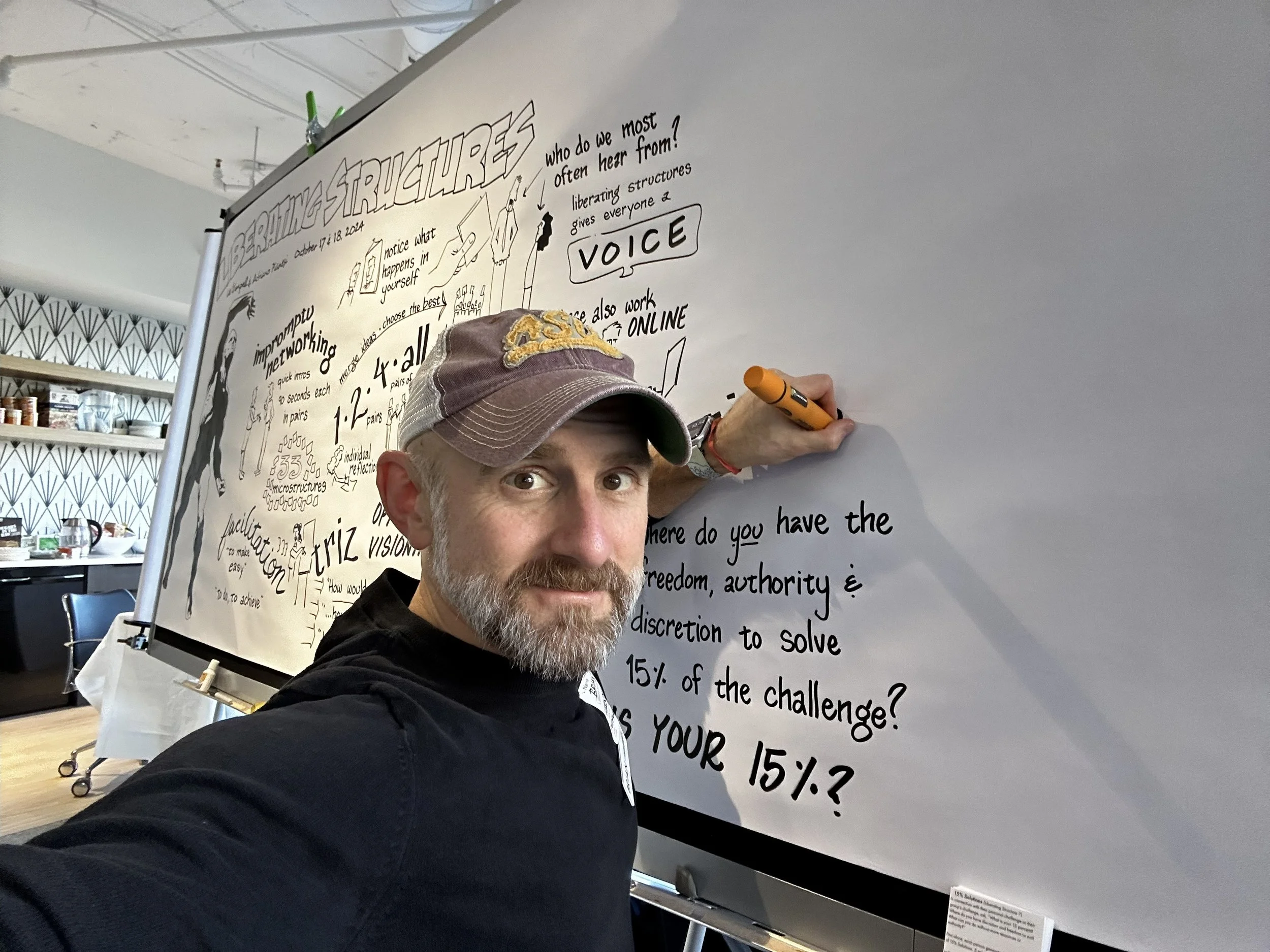 Our visual facilitation (also called graphic facilitation) service leverages large visuals and experiential methods to actively guide participants toward collaborative outcomes. Imagine a meeting space where everyone is actively engaged, creativity abounds, ideas flow freely, and a clear path forward emerges visually. This is the power of visual facilitation in action.
