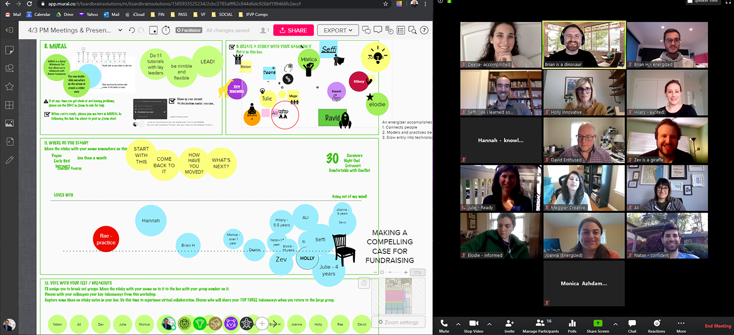 We wrote the book on virtual meetings, Surviving the Horror of Online Meetings! We've been virtual facilitation pioneers since 2013, and our team of experts is adept at using web meeting and collaboration software to create a seamless and productive experience for remote teams. Whether it's brainstorming sessions, project planning meetings, or team-building exercises, we can facilitate them all virtually. We even offer training programs to equip you with the skills to confidently lead virtual meetings yourself. Distance should not be a barrier to collaboration!
